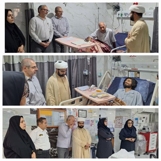 عیادت رئیس و امام جماعت بیمارستان رازی اهواز از بیماران بستری در بخشها